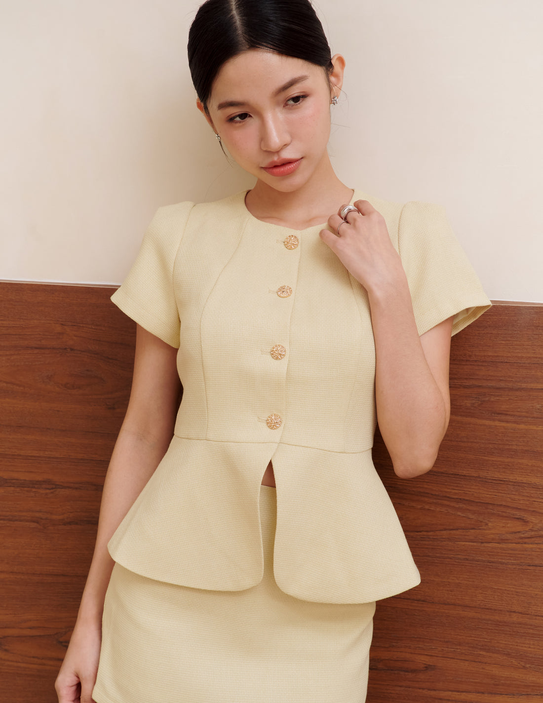 Amara Tweed Peplum Top in Butter Yellow