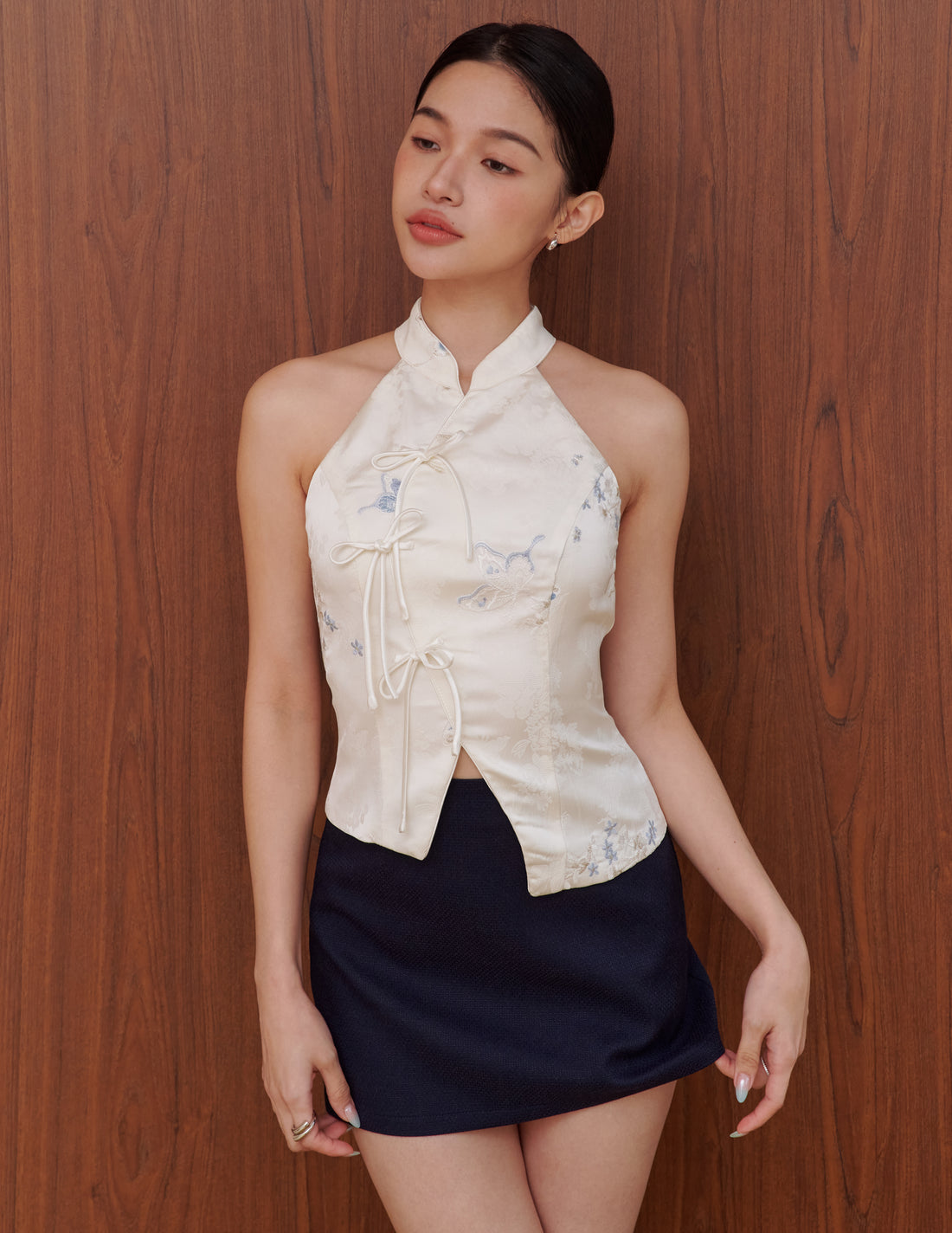 Lina Jacquard Cheongsam Top in White