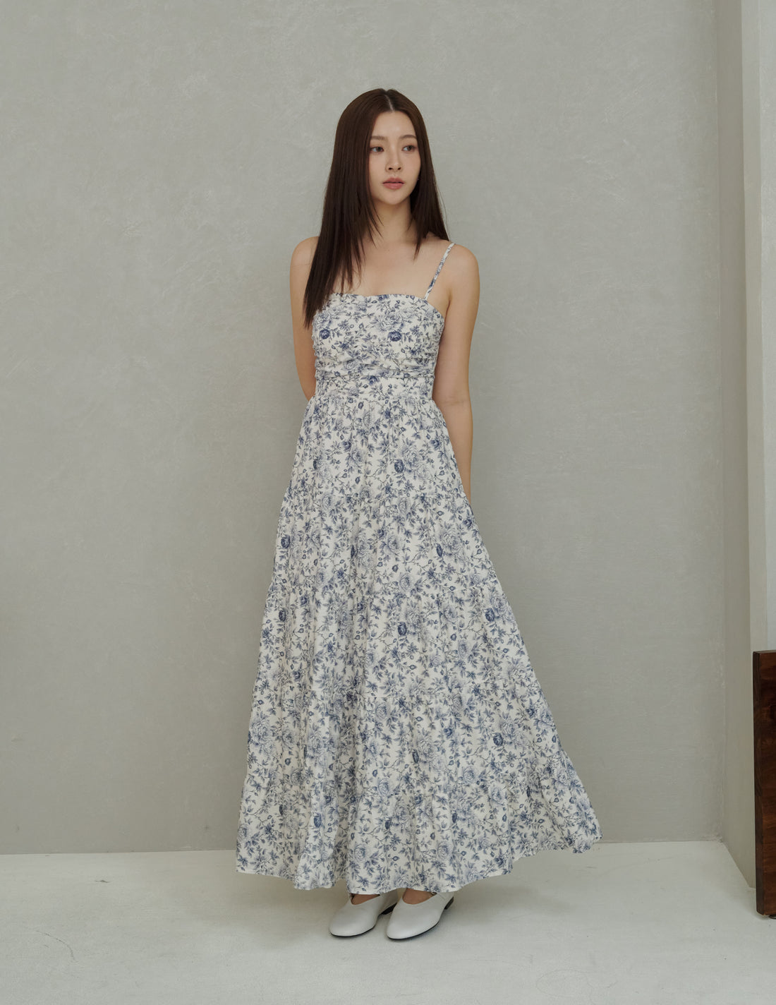 Lyndsey Padded Maxi Dress in Vintage Floral