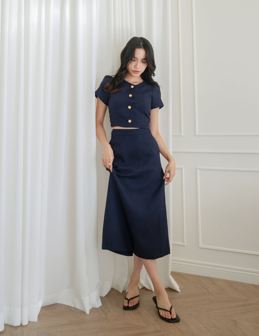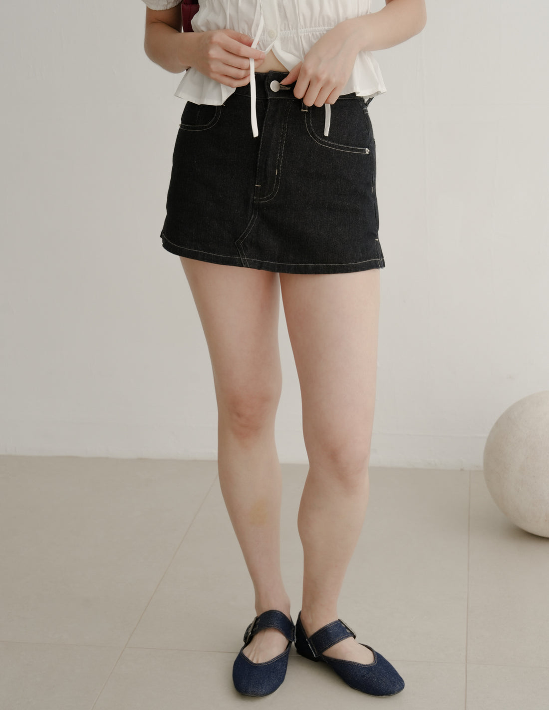 Ivy Contrast Waist Denim Skirt in Dark Wash
