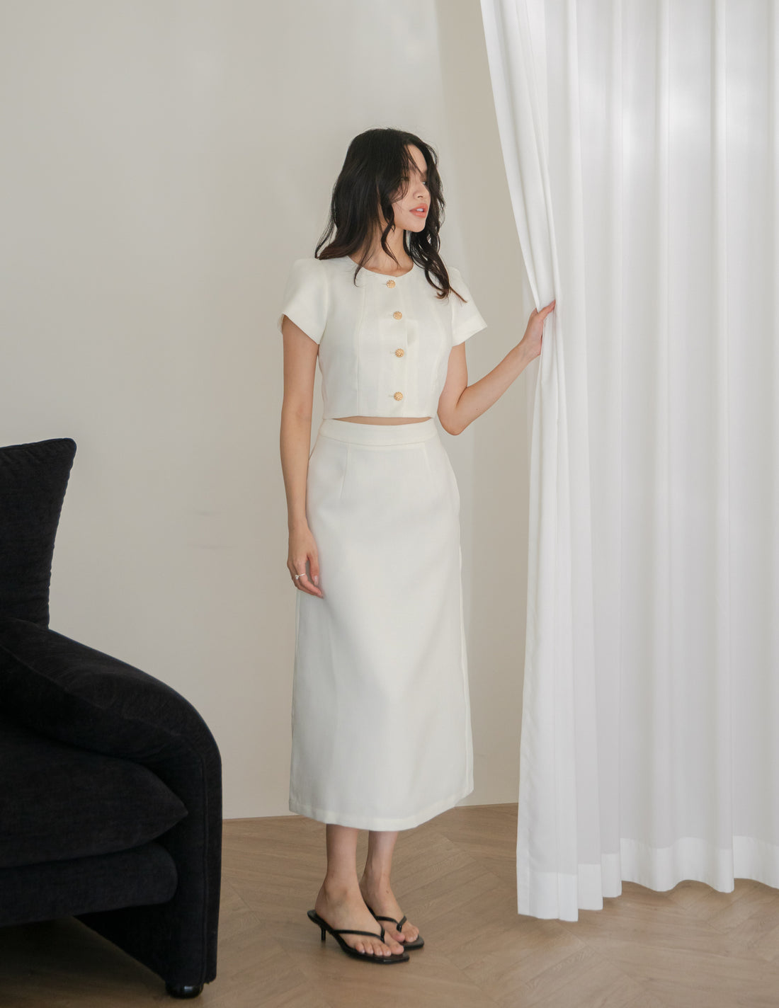 Information Elasticised waistband Concealed side zip Fully lined Also available in Champagne and Black Composition...