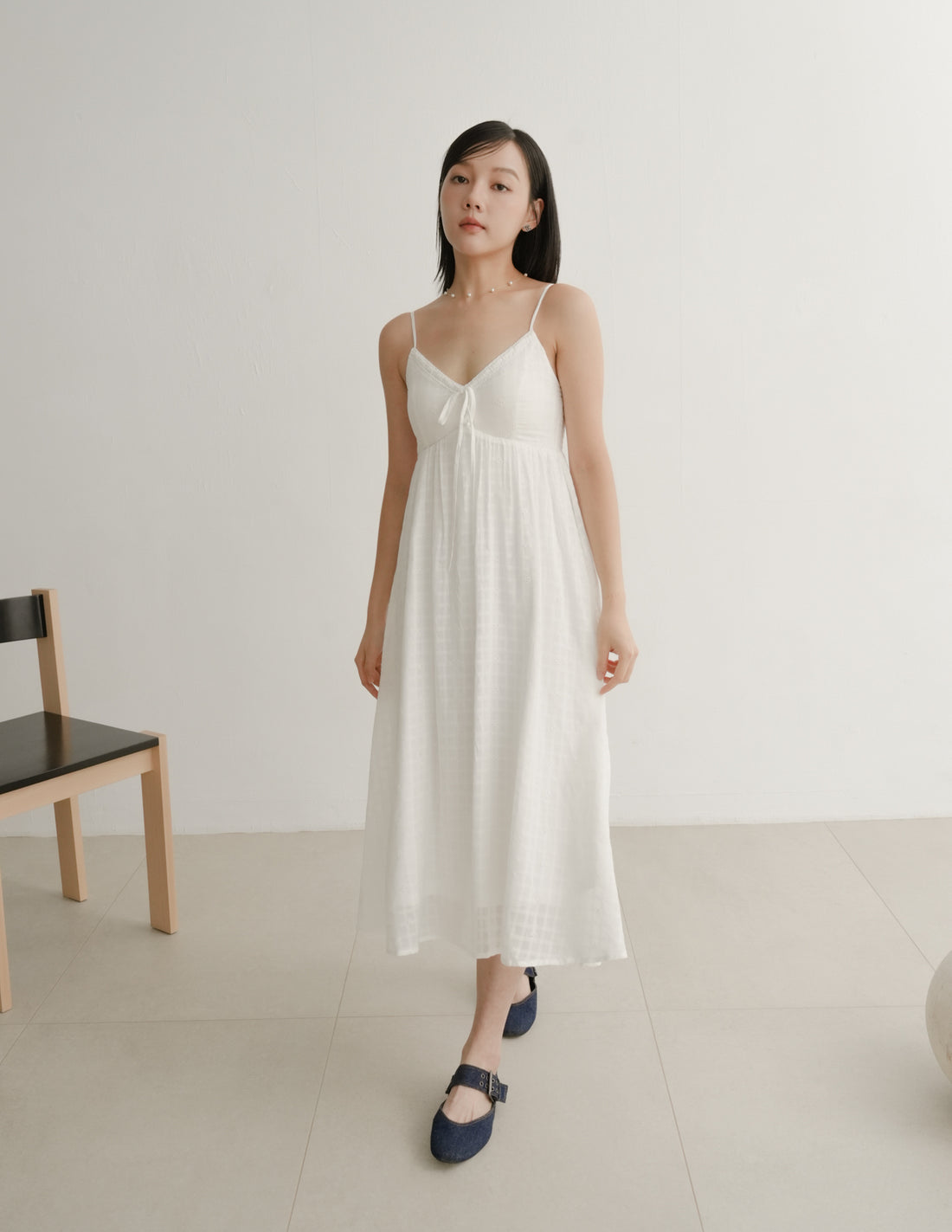 Thalia Lace Ribbon Midi Dress in Eyelet