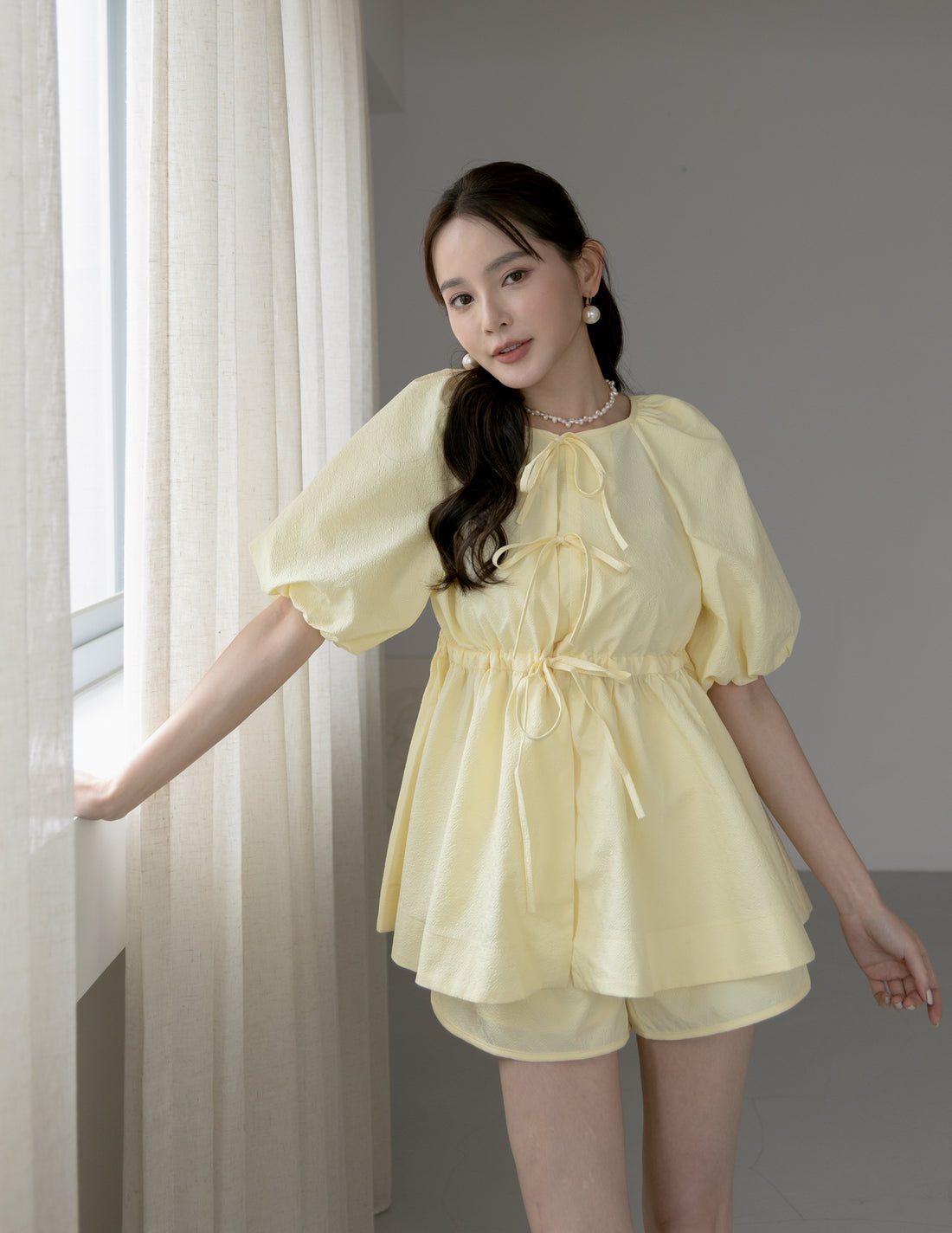 Information Partially lined Self-tie ribbon Drawstring waist (top) Elasticised waist (shorts) Side pockets (shorts) Also...