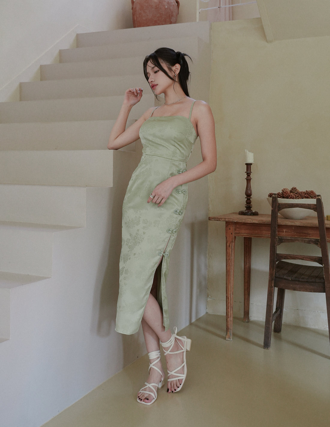 Suzie Chinese Knot Midi Dress in Green