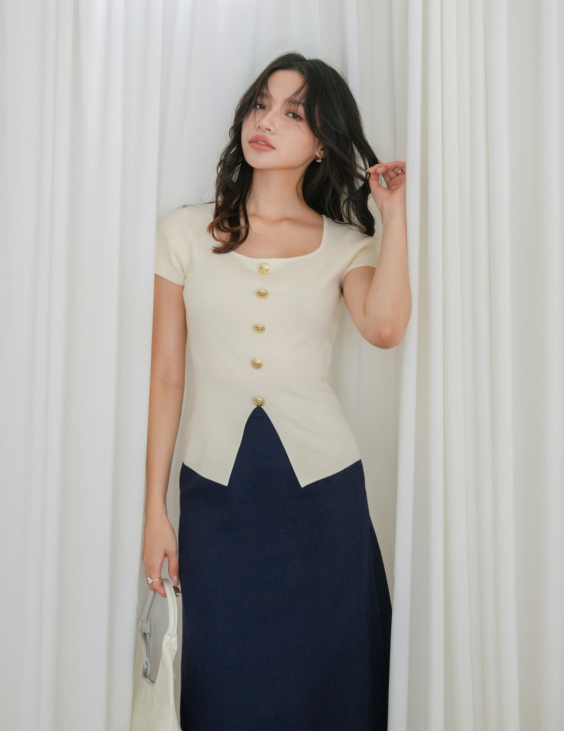 Information Non-functional buttons Stretchable Open hem Soft knit Also available in Cream and Black Composition...