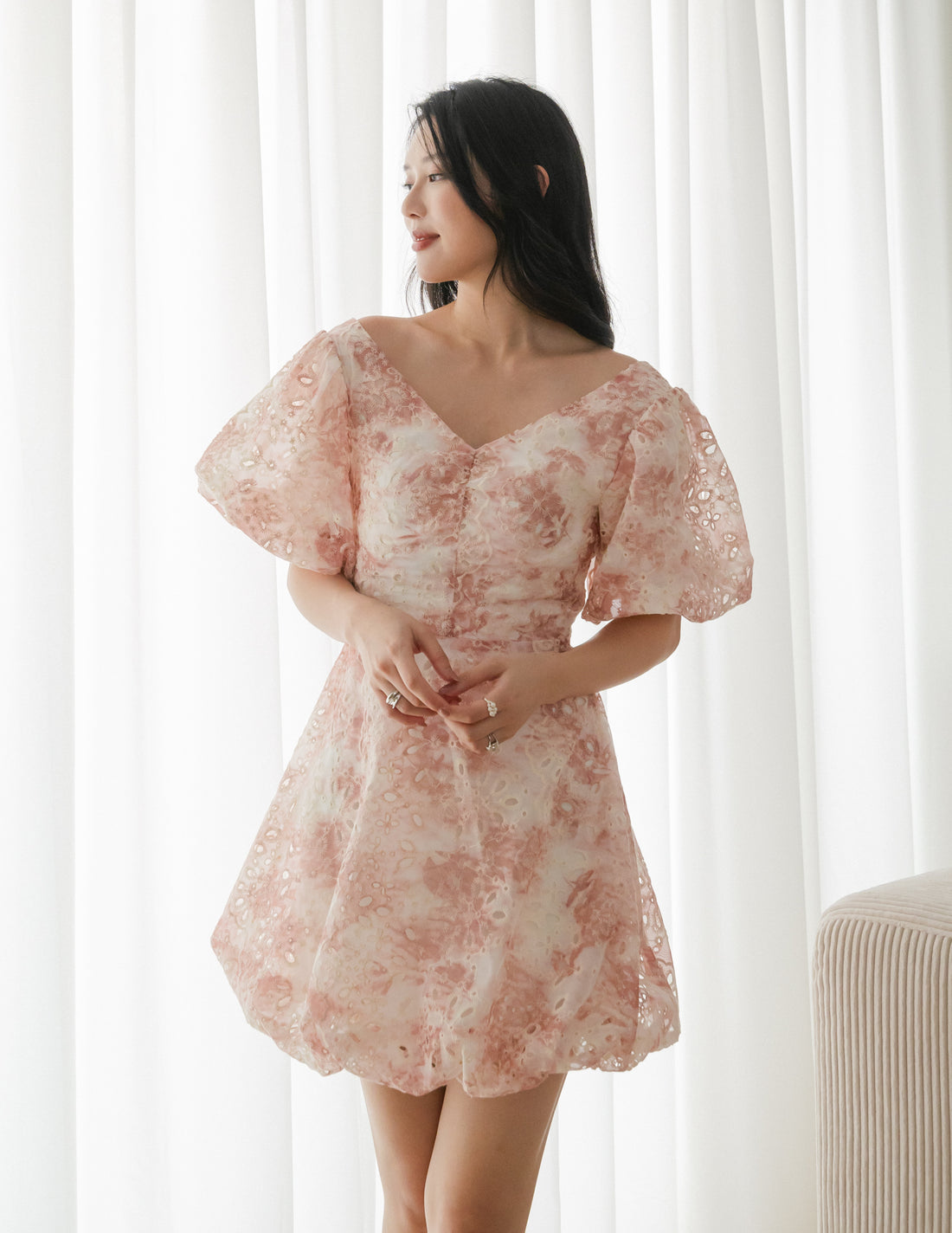 Katie Floral Bubble Dress in Dusty Pink