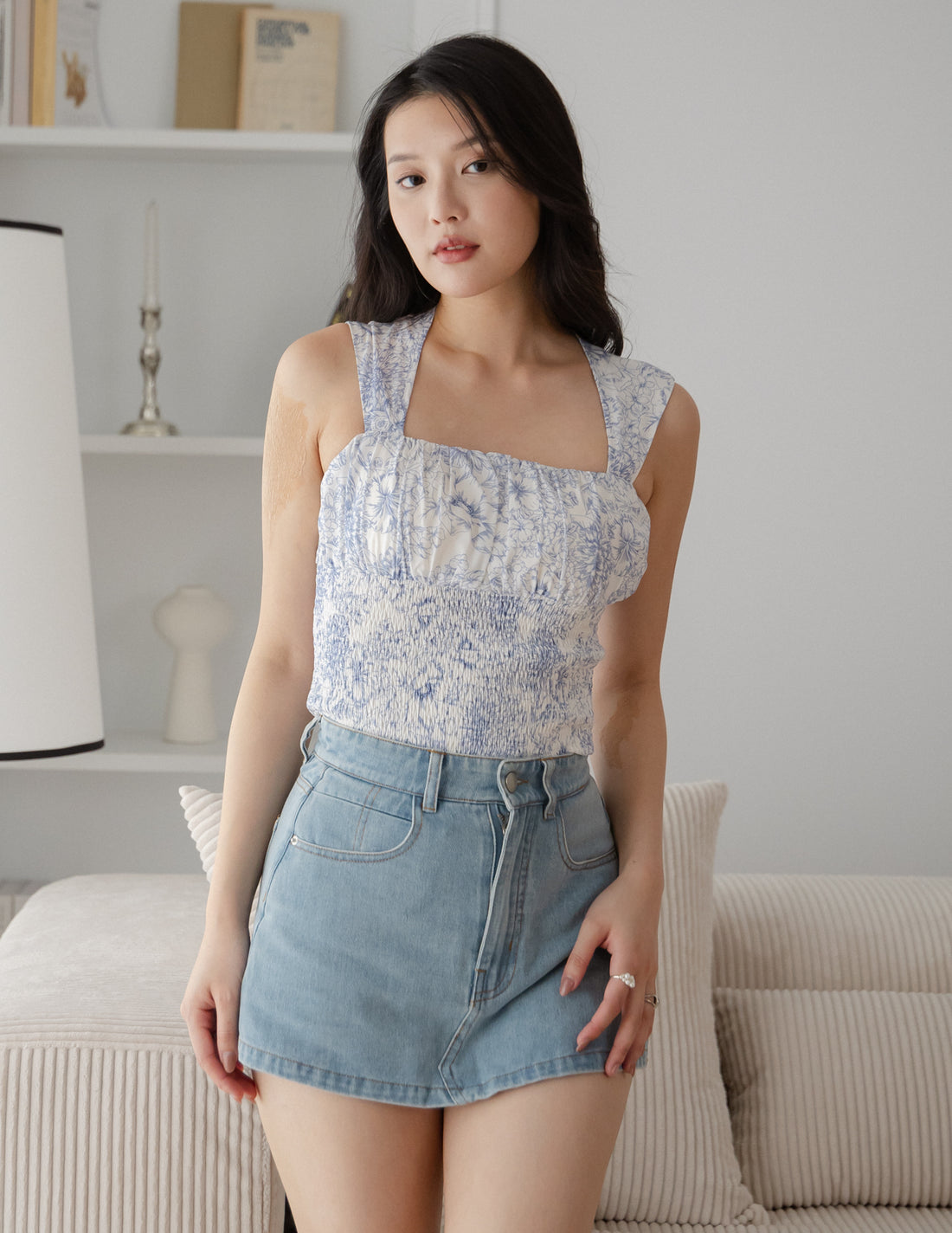 Evelyn Floral Padded Top in Blue