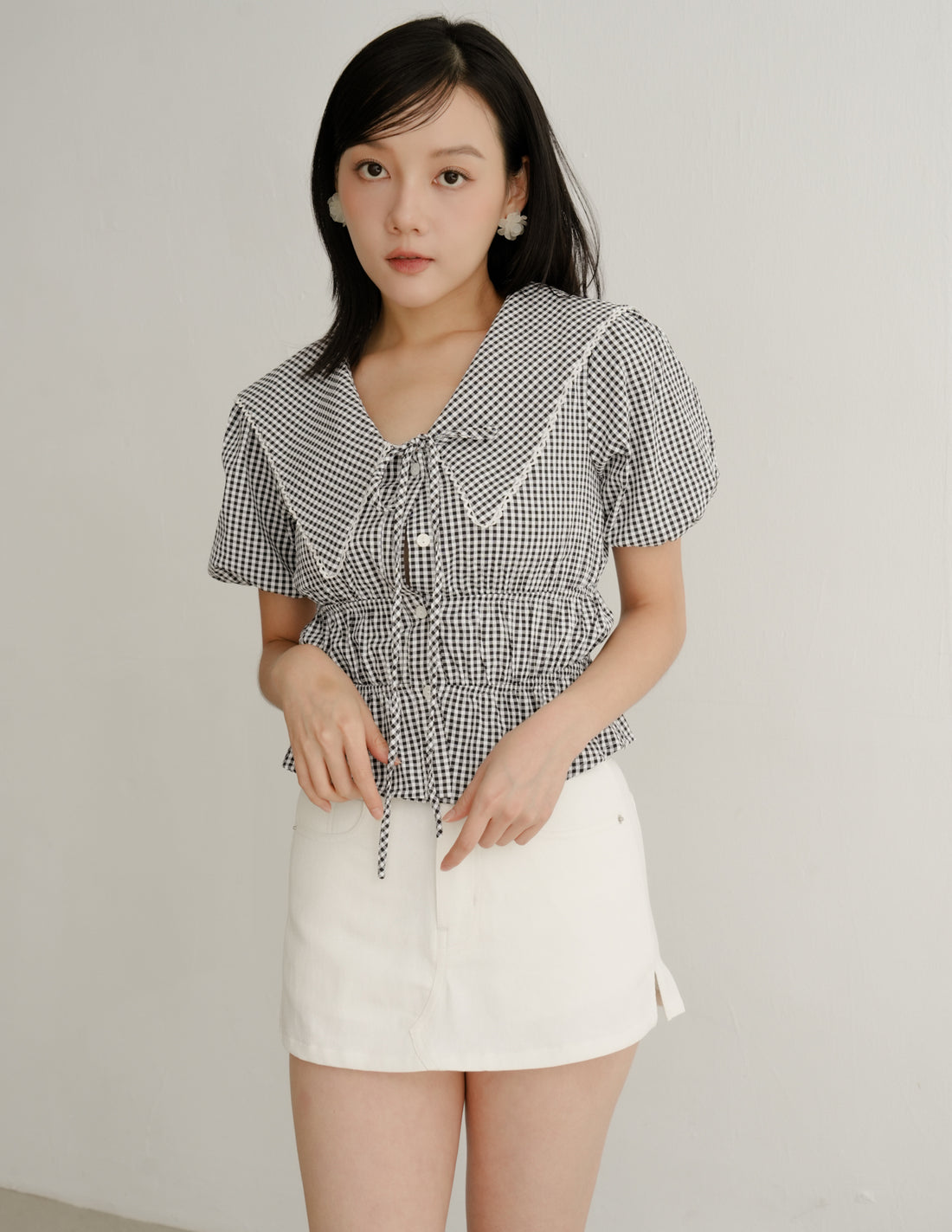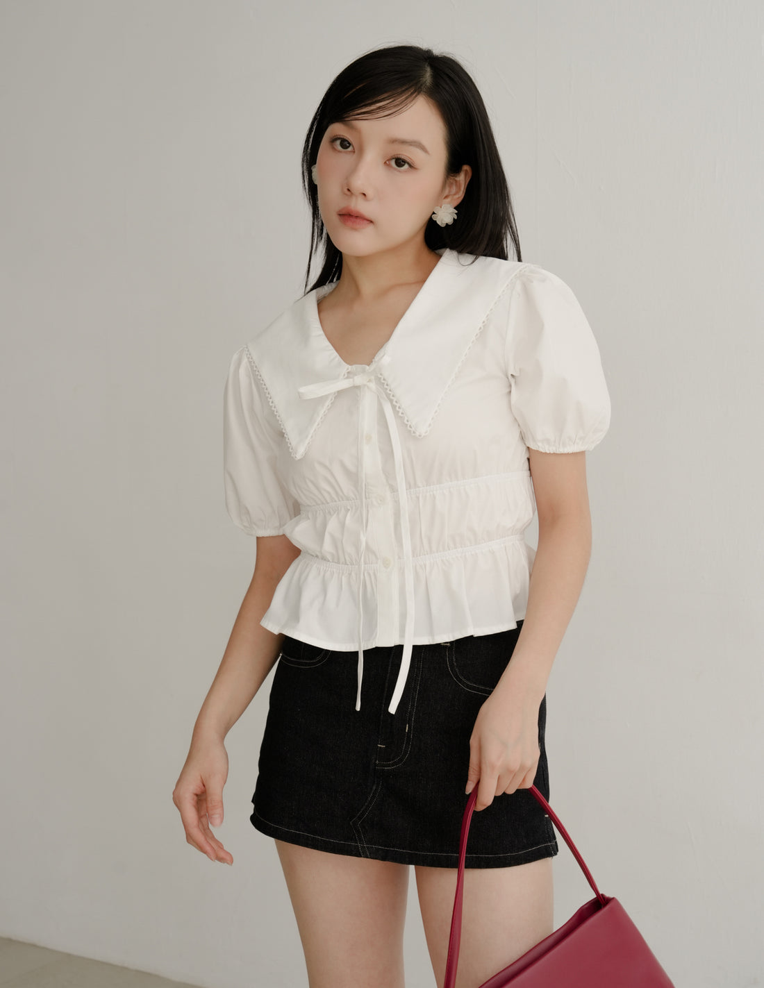 Poppy Ribbon Tie Peterpan Top in Polka Dot