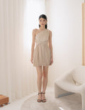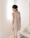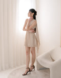 Cheyenne Toga Pleated Dress in Champagne