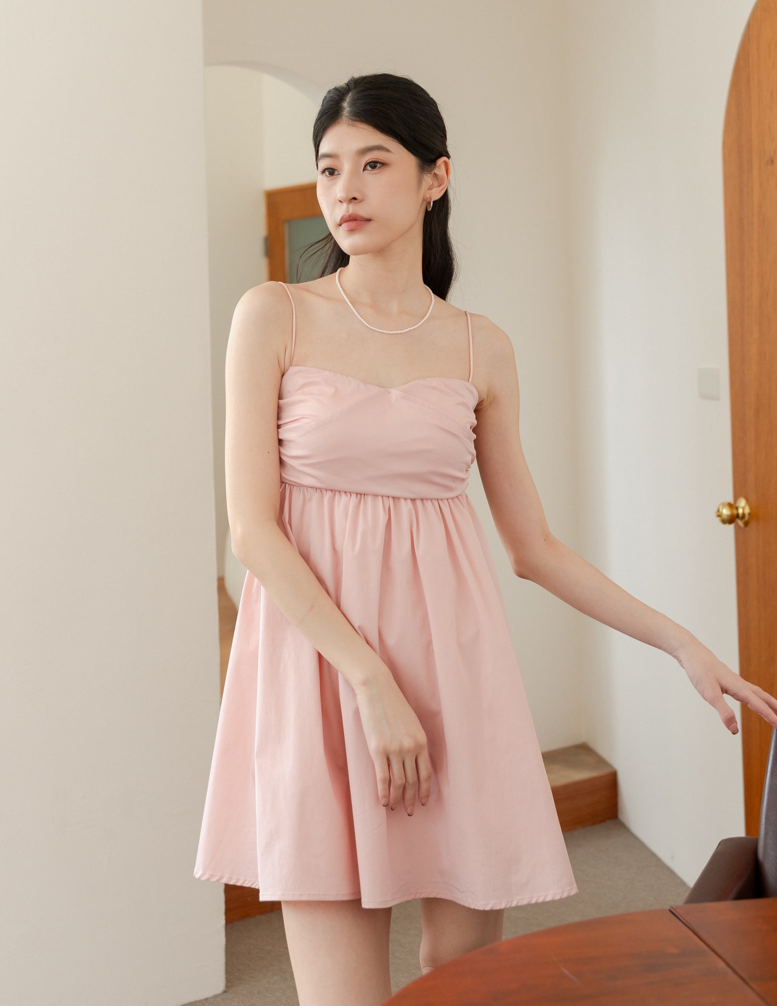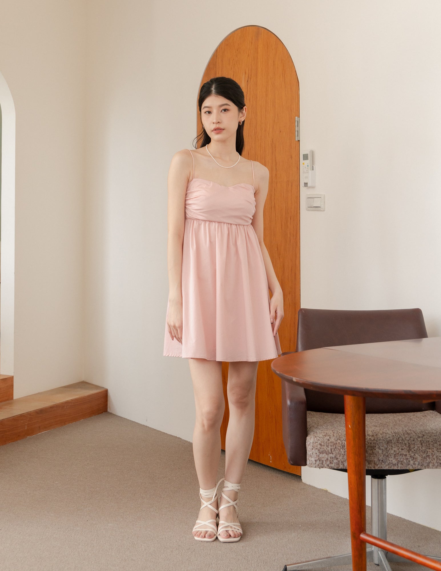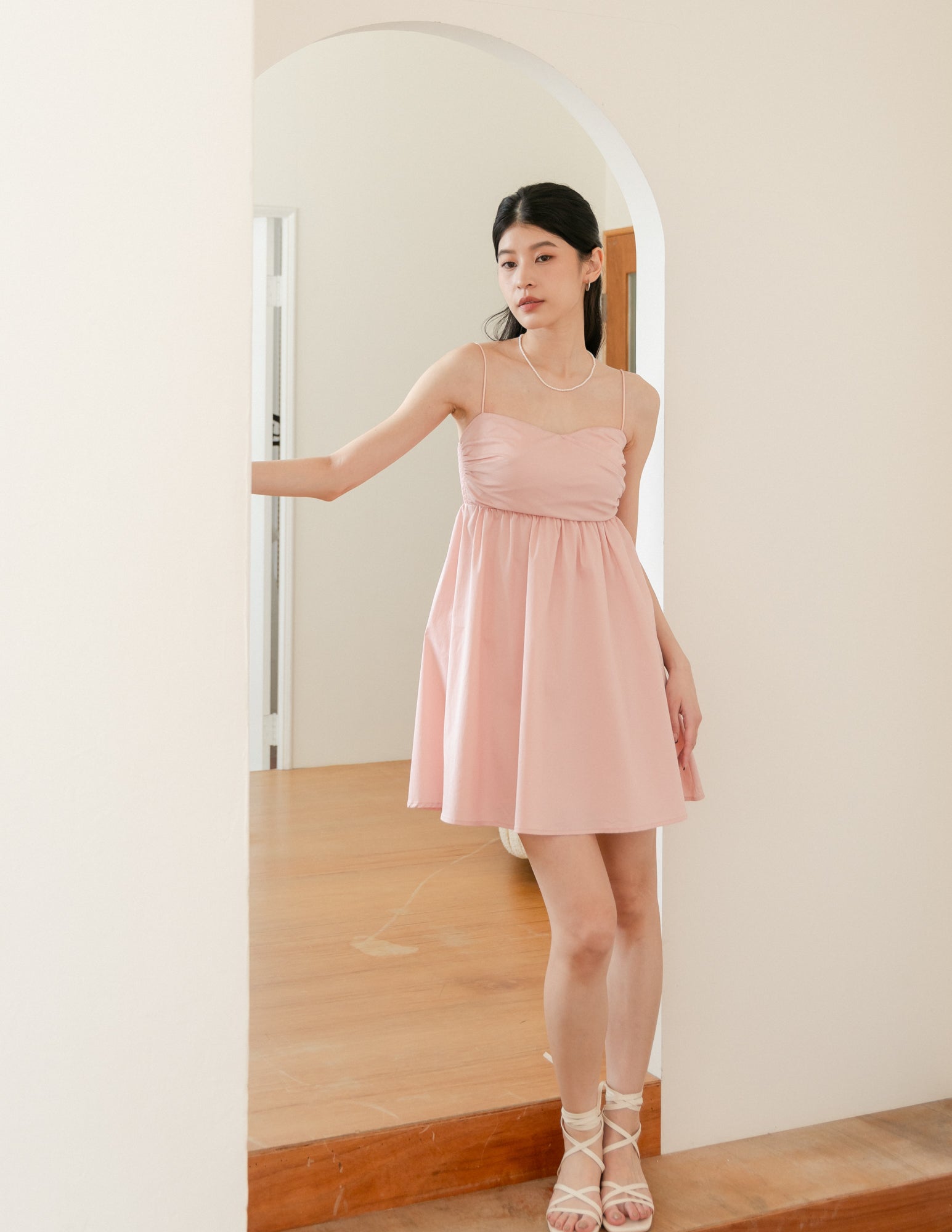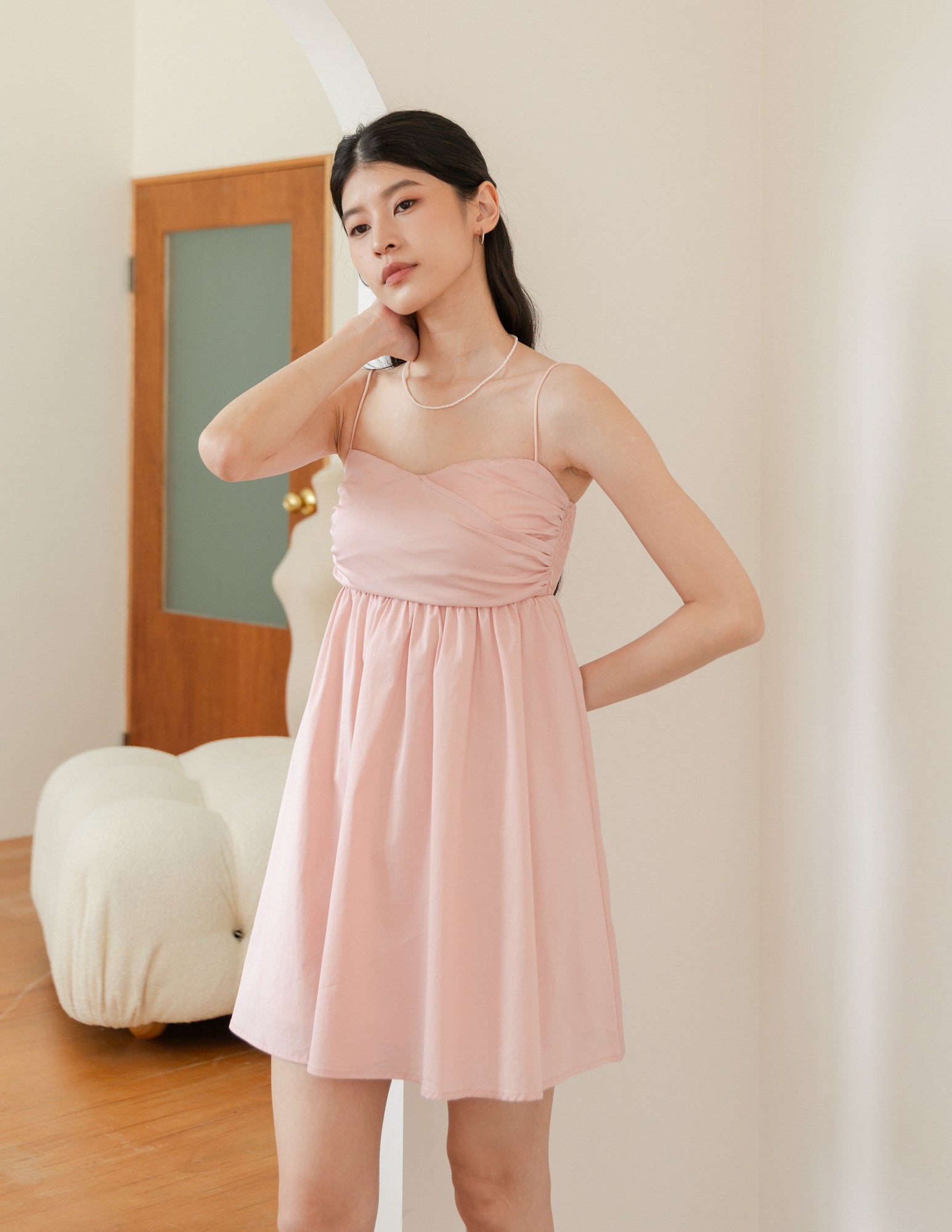 Christelle Padded Babydoll Dress in Blush