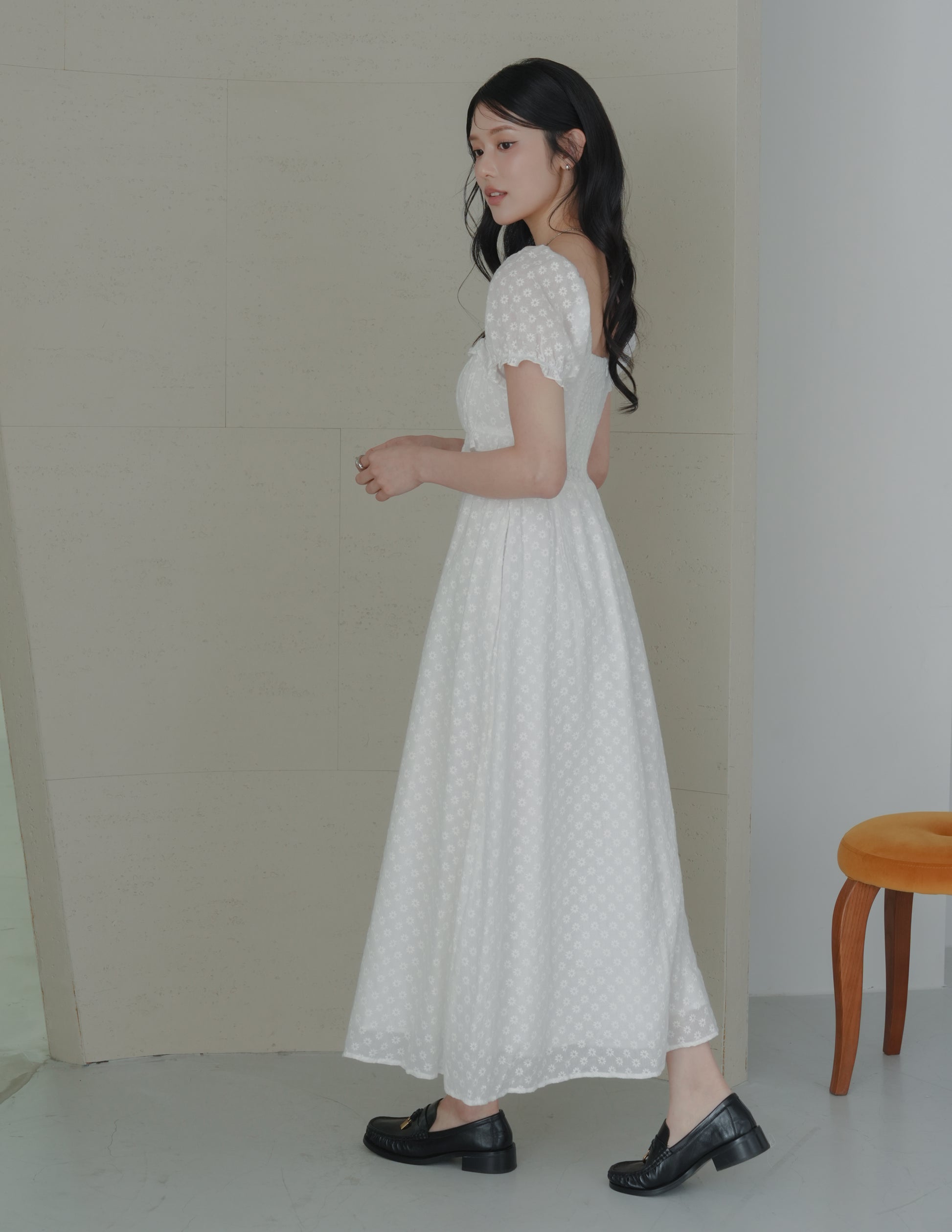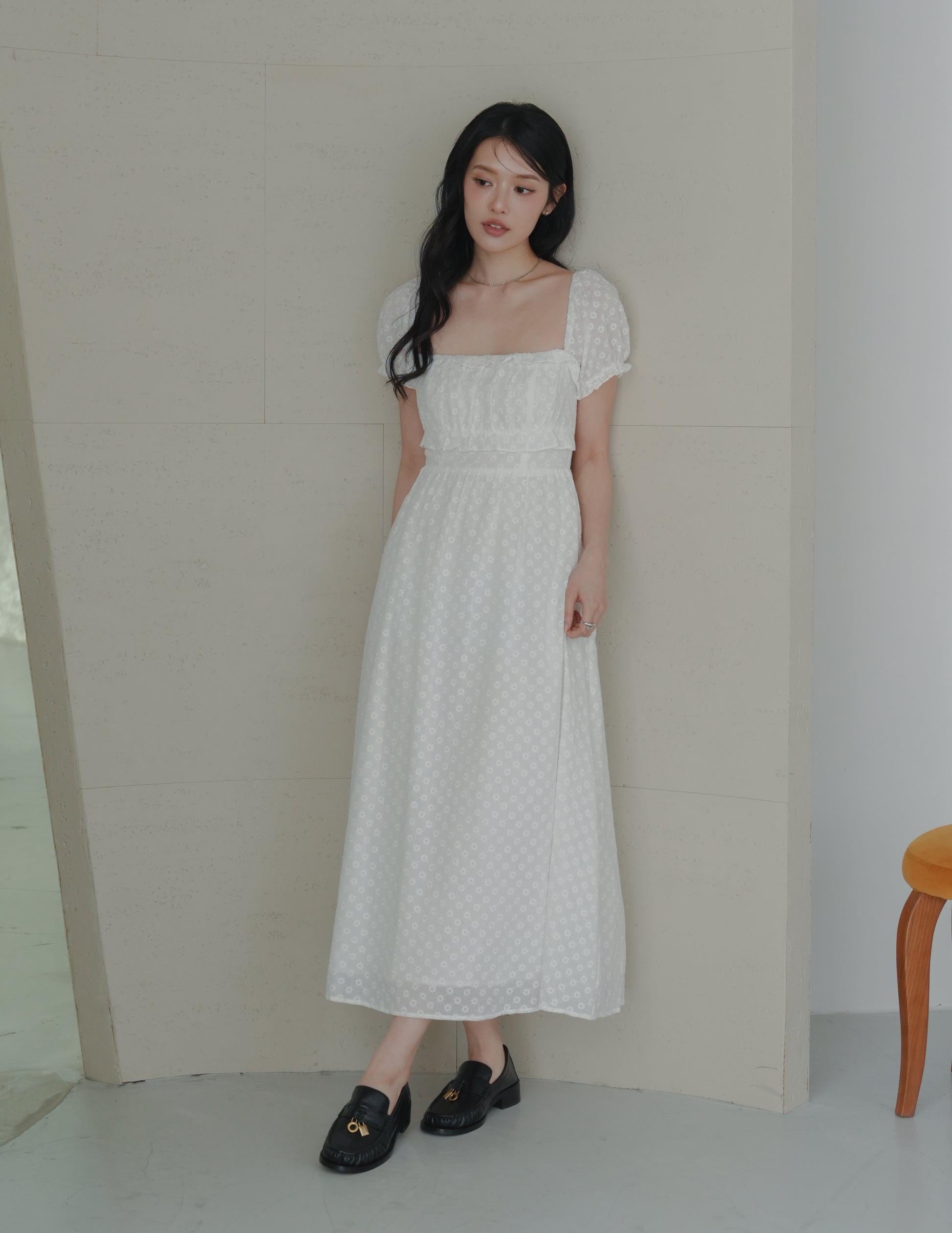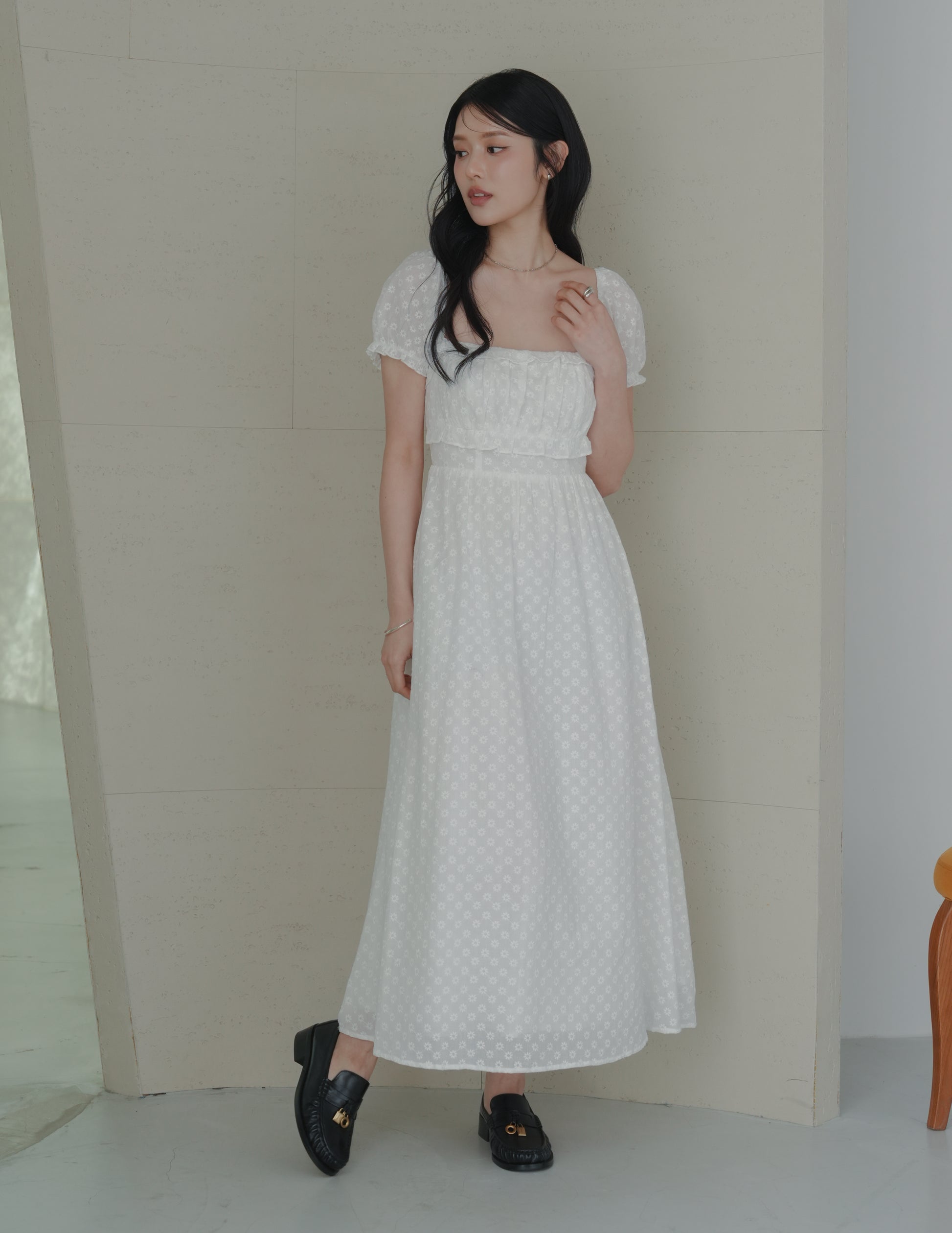Jasmine Padded Maxi Dress in Daisy Eyelet