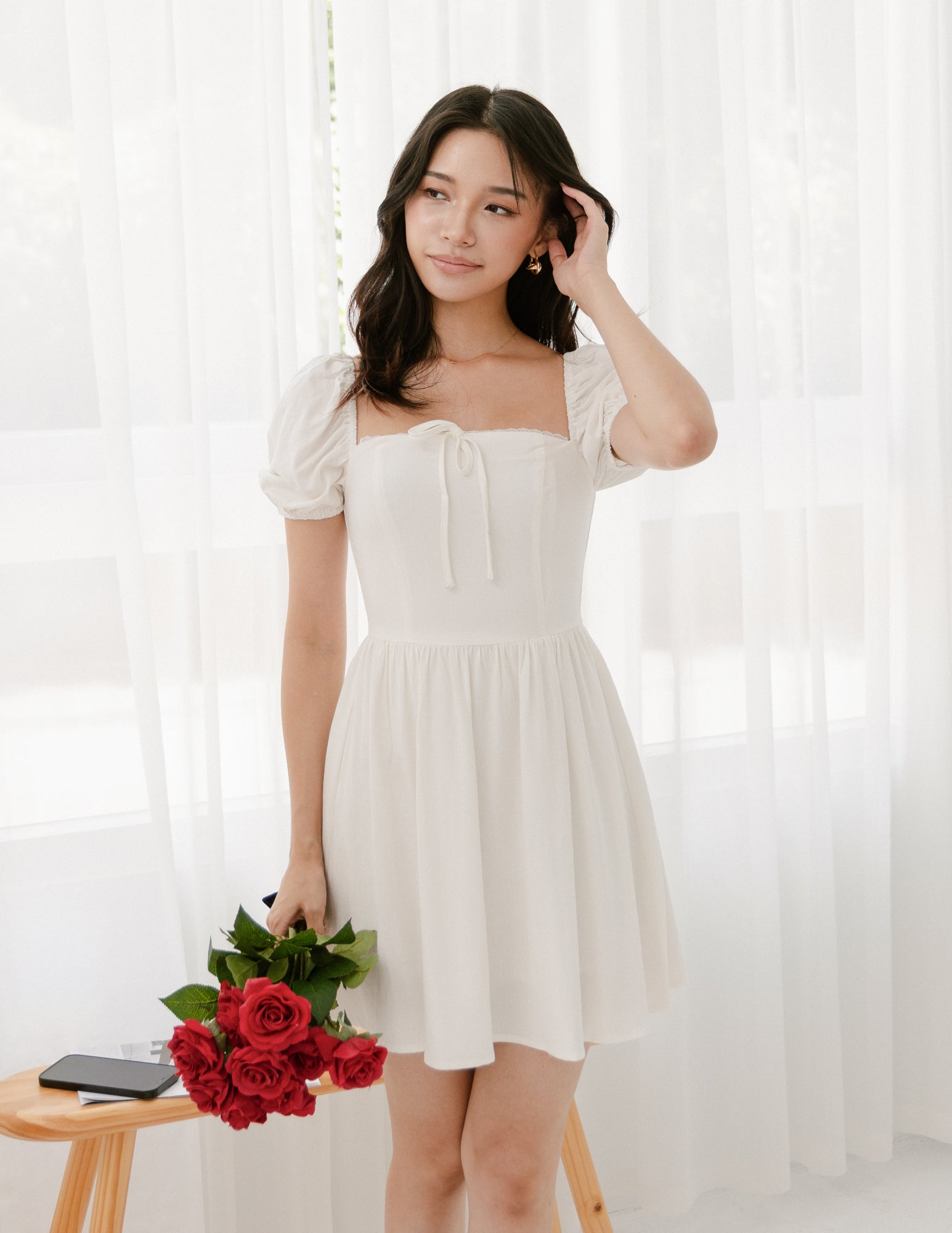 Model is 1.62m, (15.0" PTP, 12.0" Waist, 17.0" Hip), wearing size XS