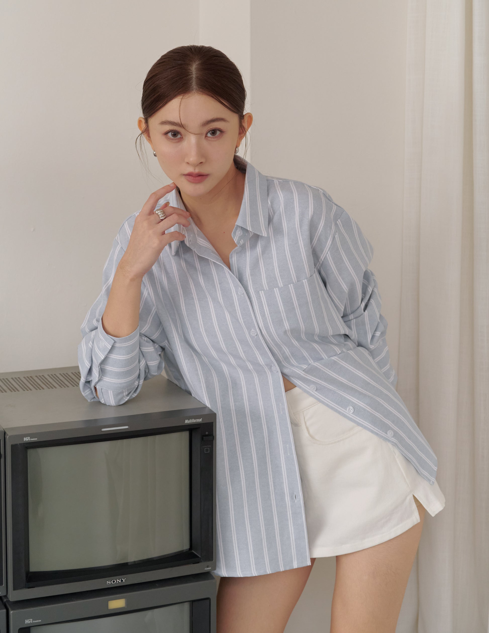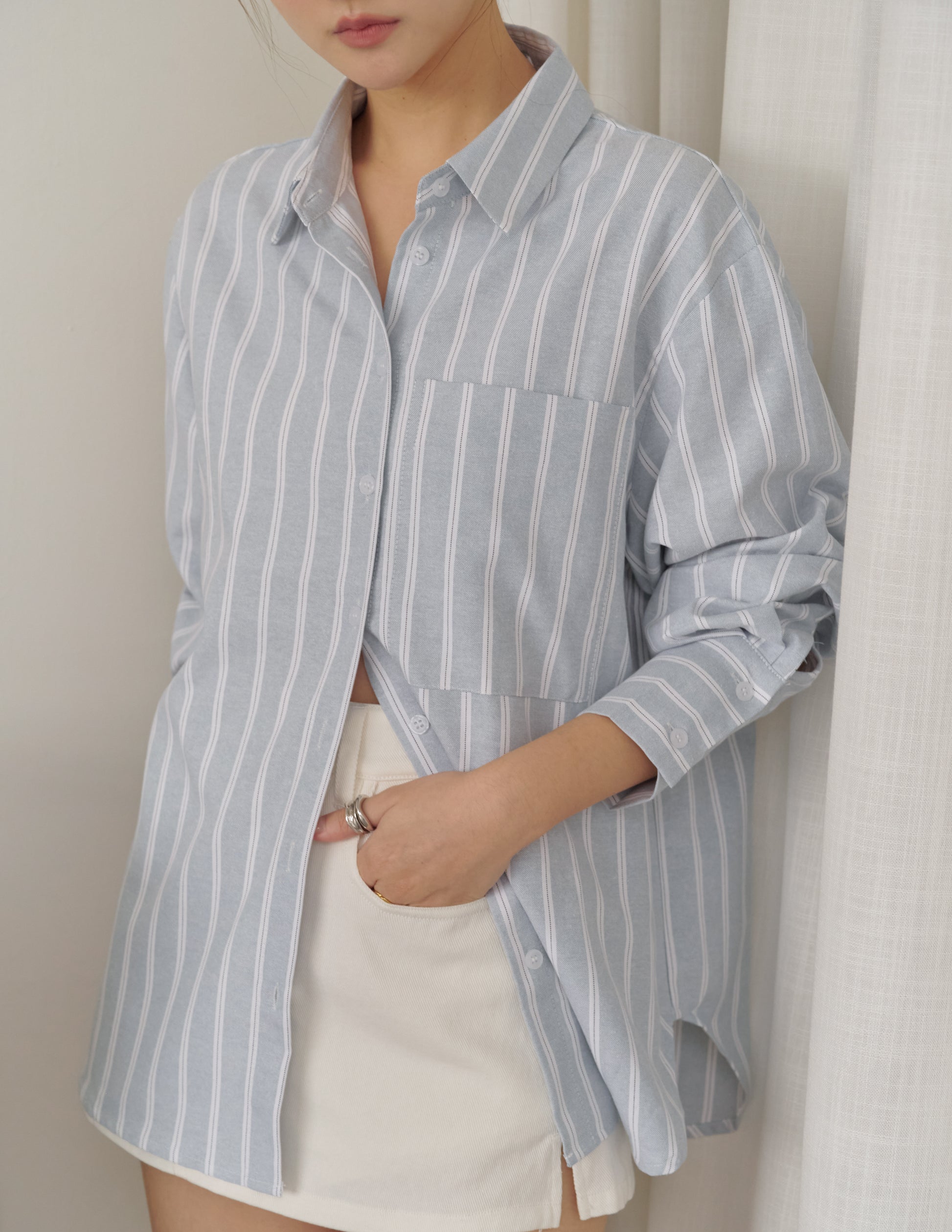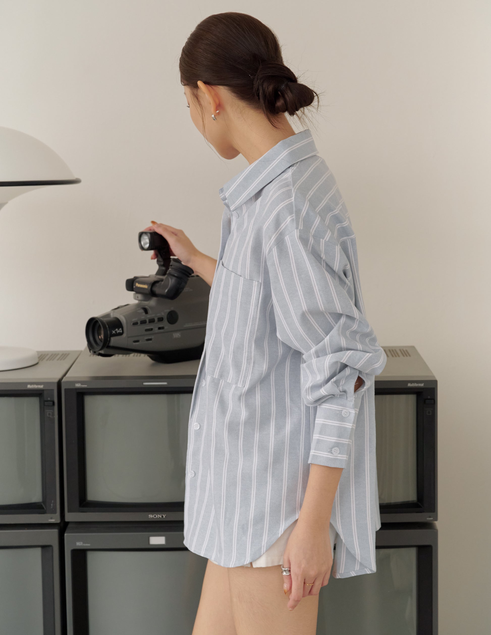 Nikki Pinstripe Oversized Shirt in Grey Blue
