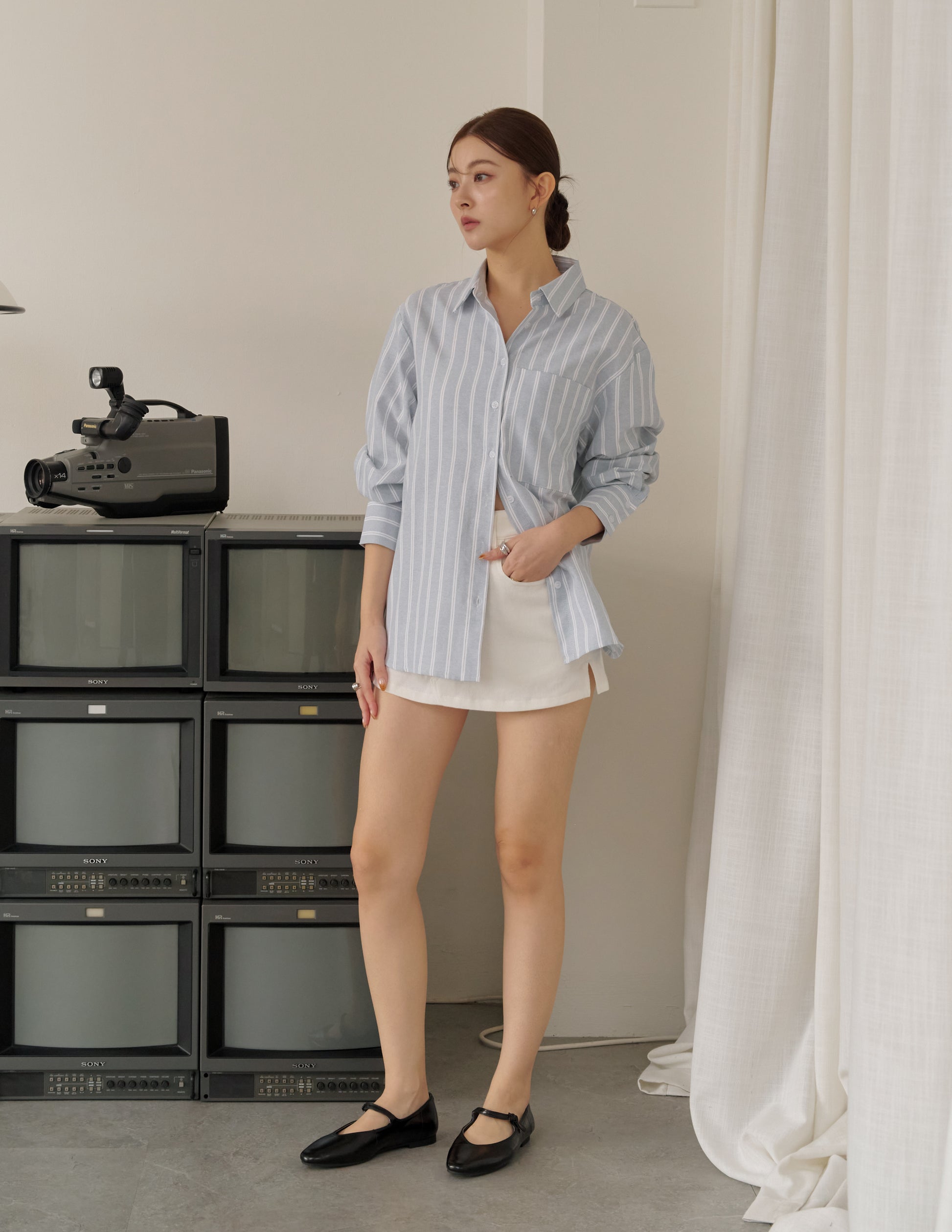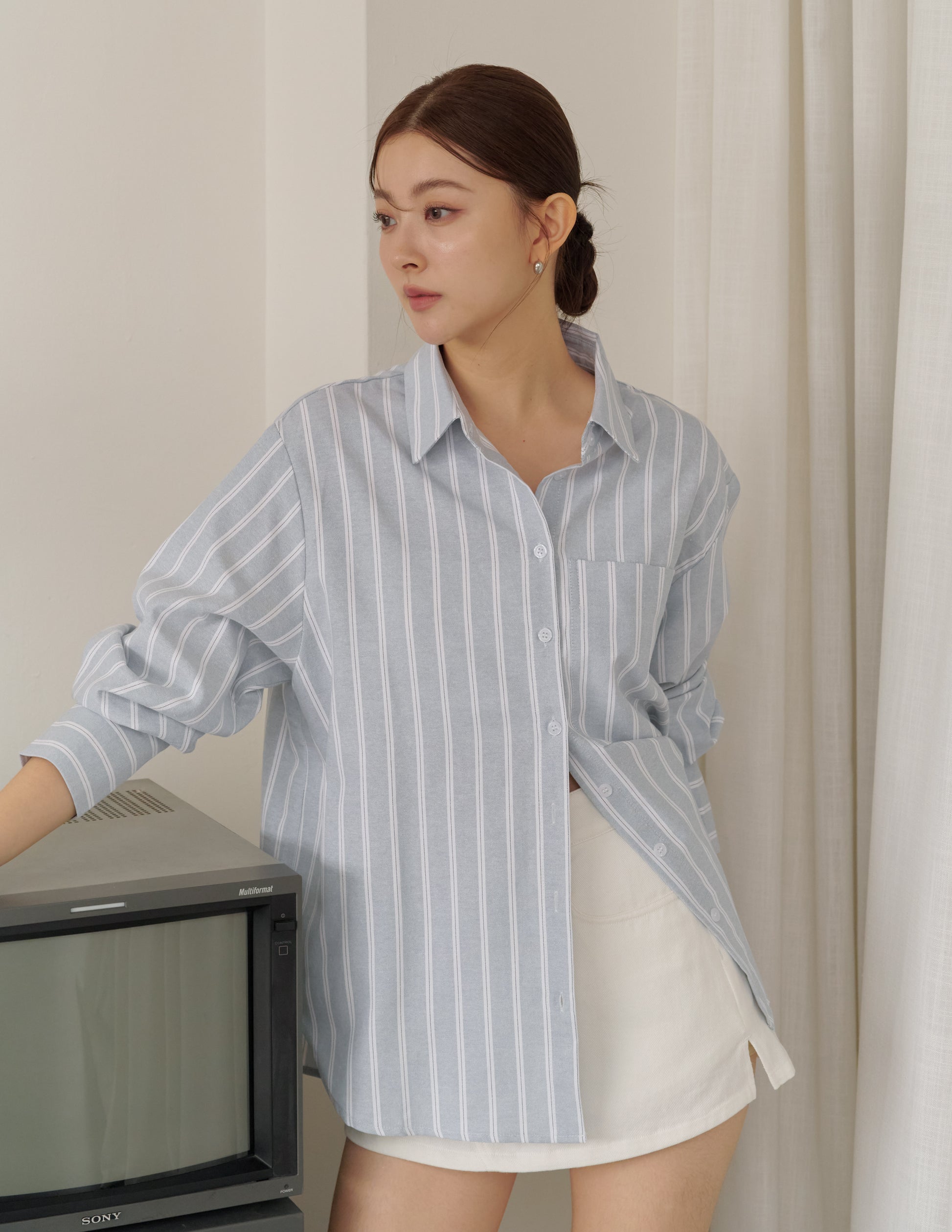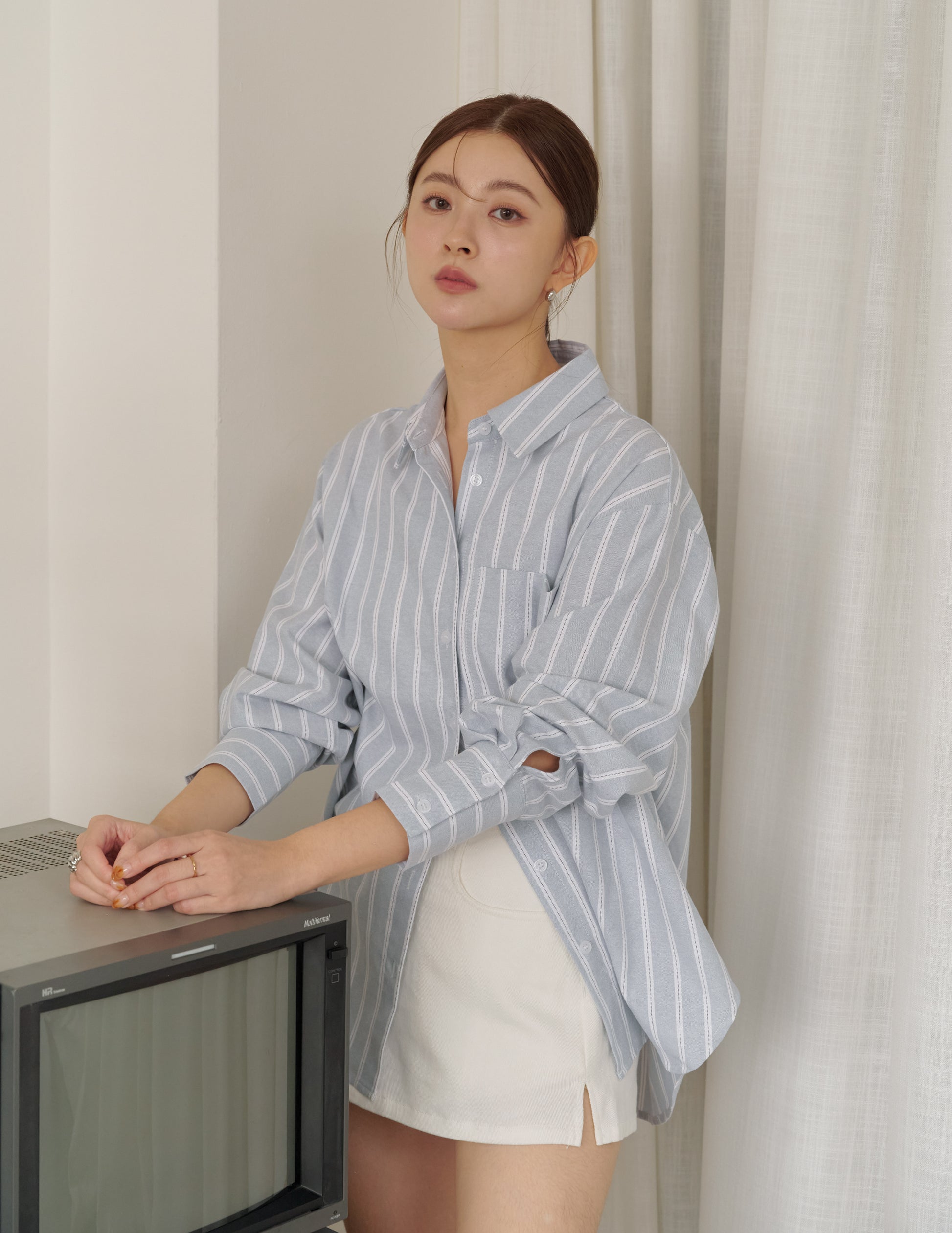 Nikki Pinstripe Oversized Shirt in Grey Blue