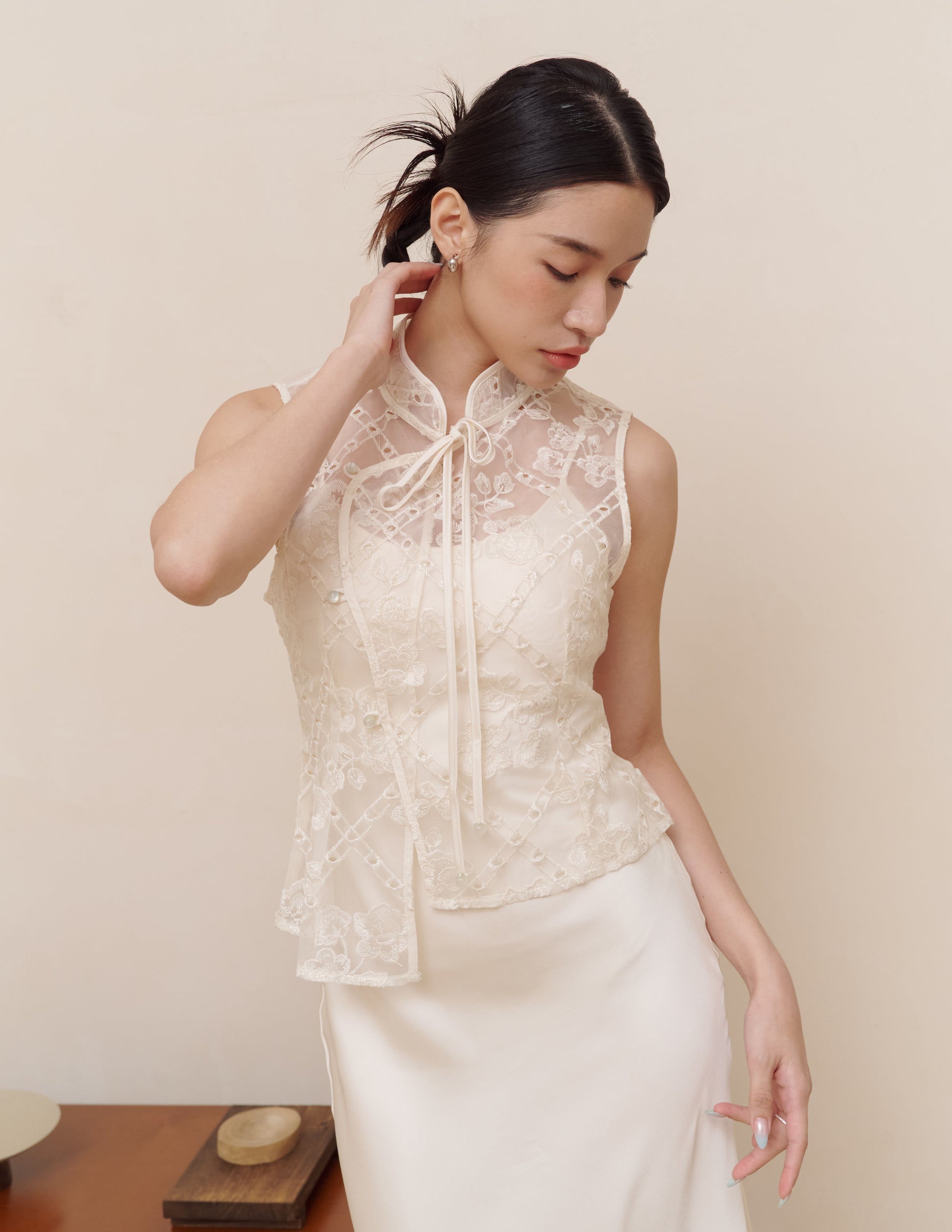 Qian Embroidered Overlay Top in Diamond Bloom
