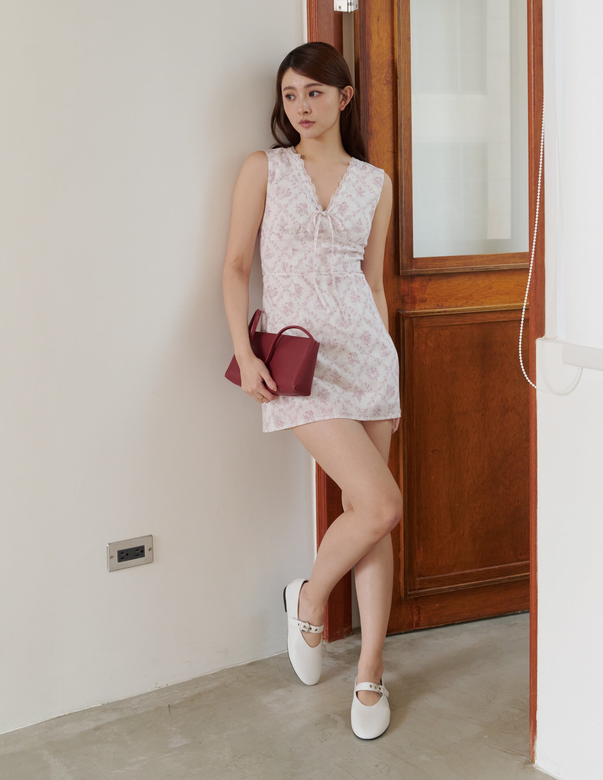 Rosette Padded Lace-Tie Romper Dress in Pink