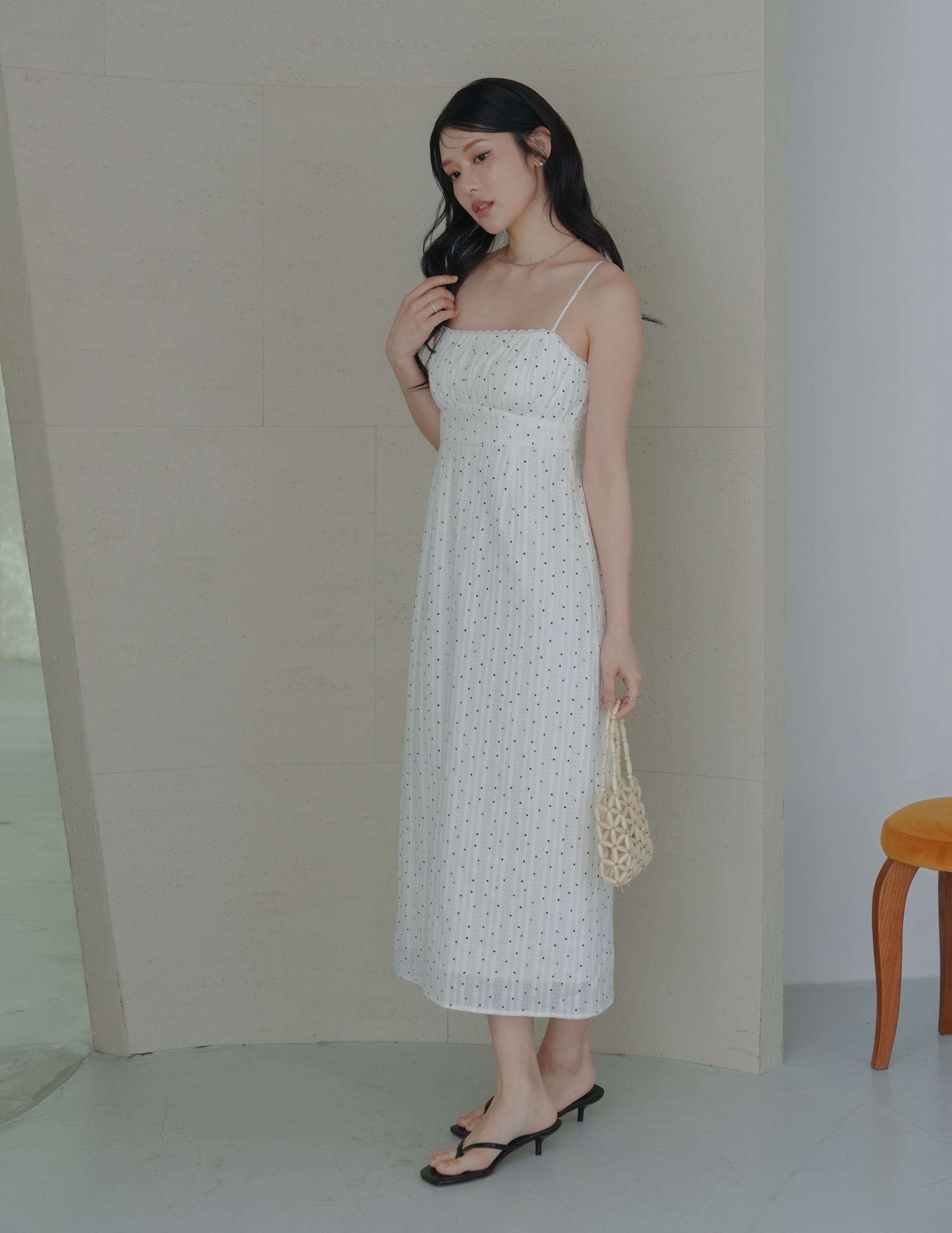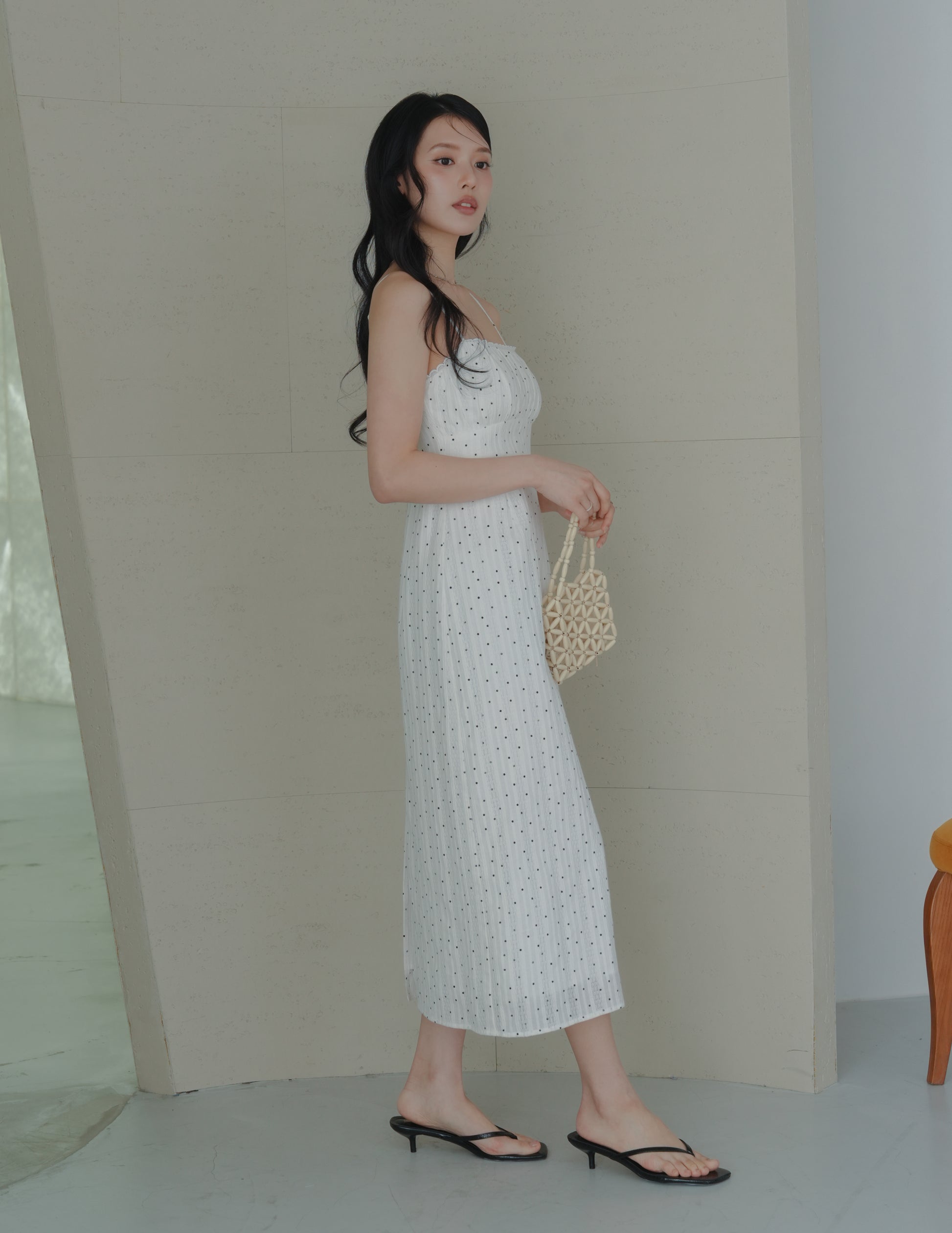 Sophia Lace Trim Midi Dress in Polka Dot