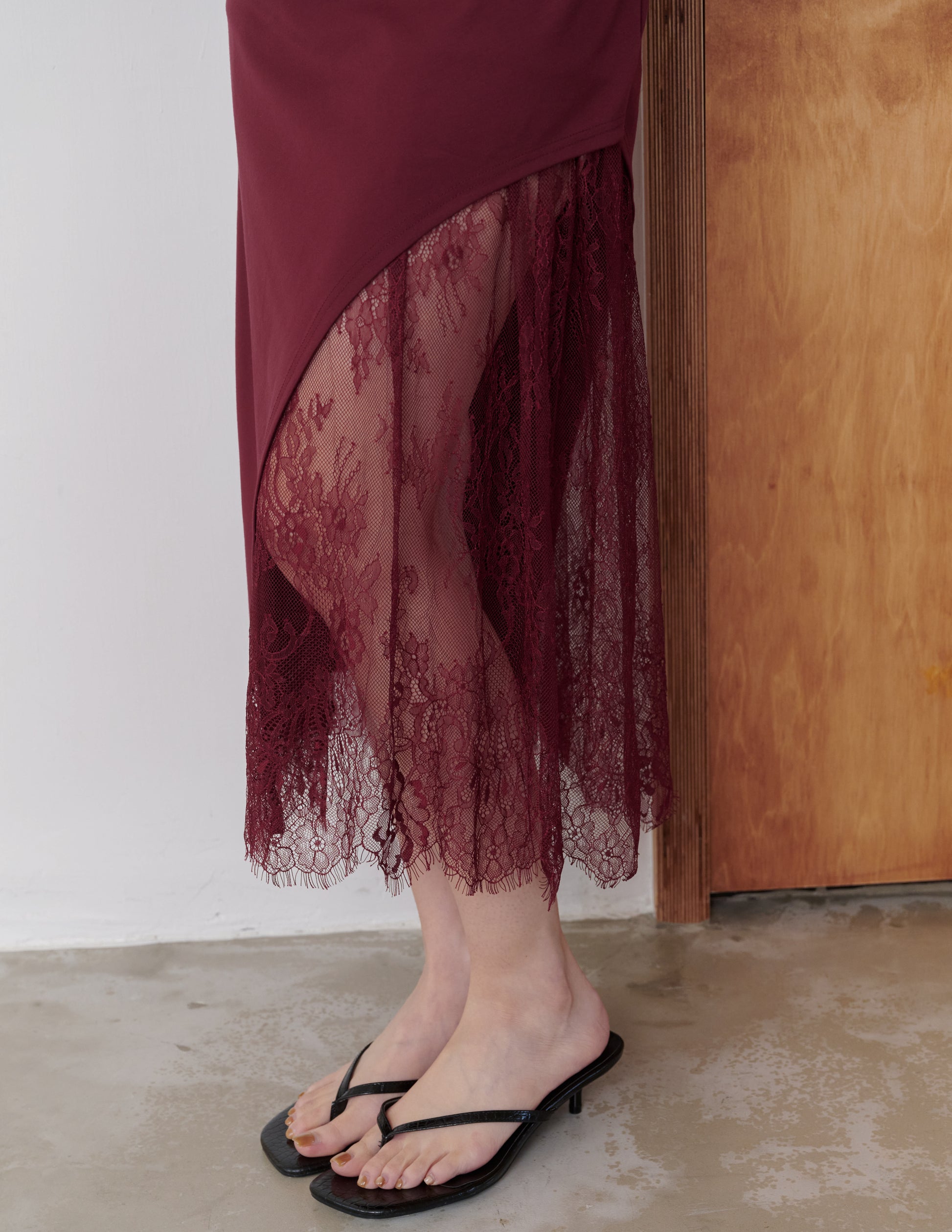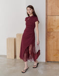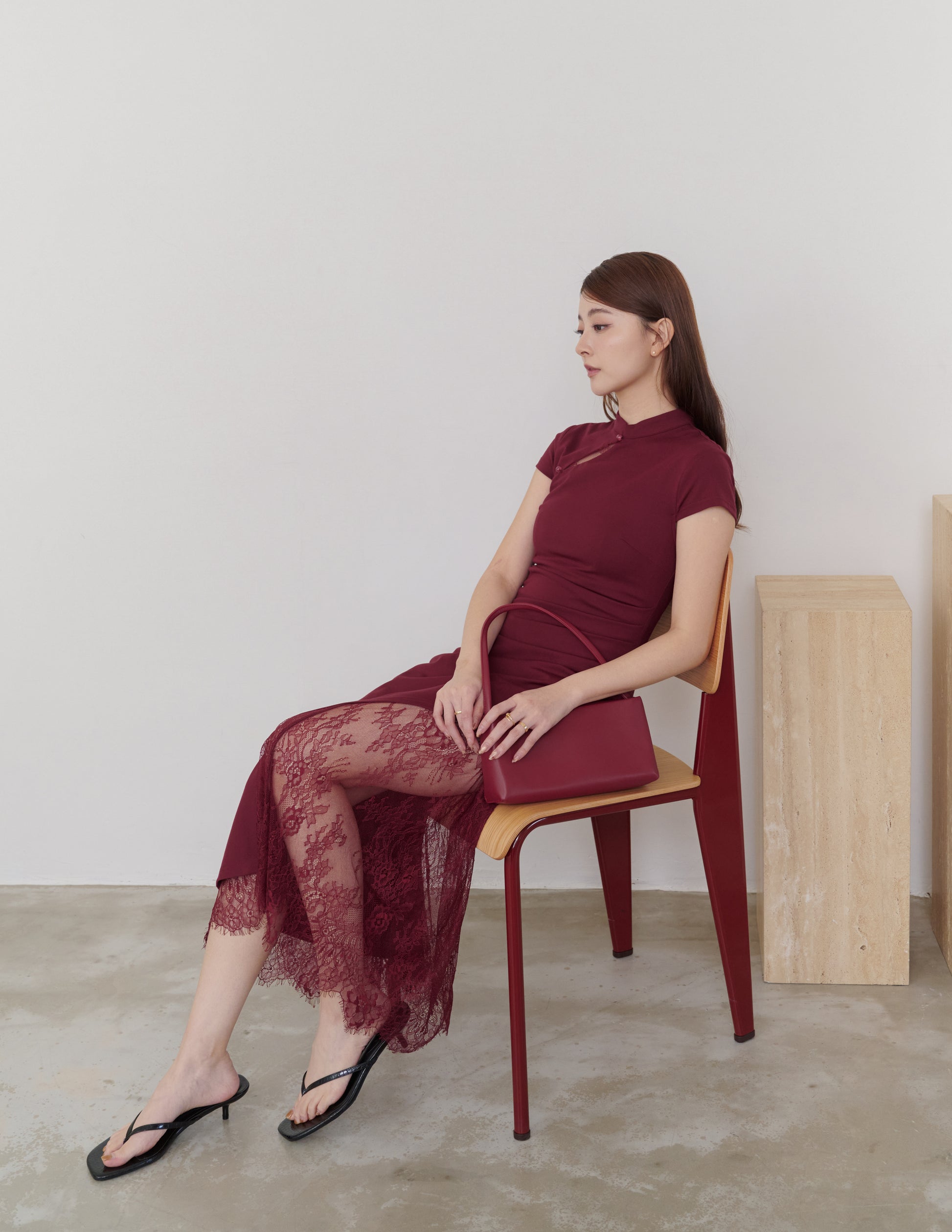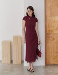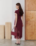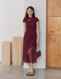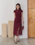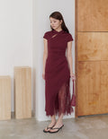 Susan Lace Cheongsam Dress in Wine Red